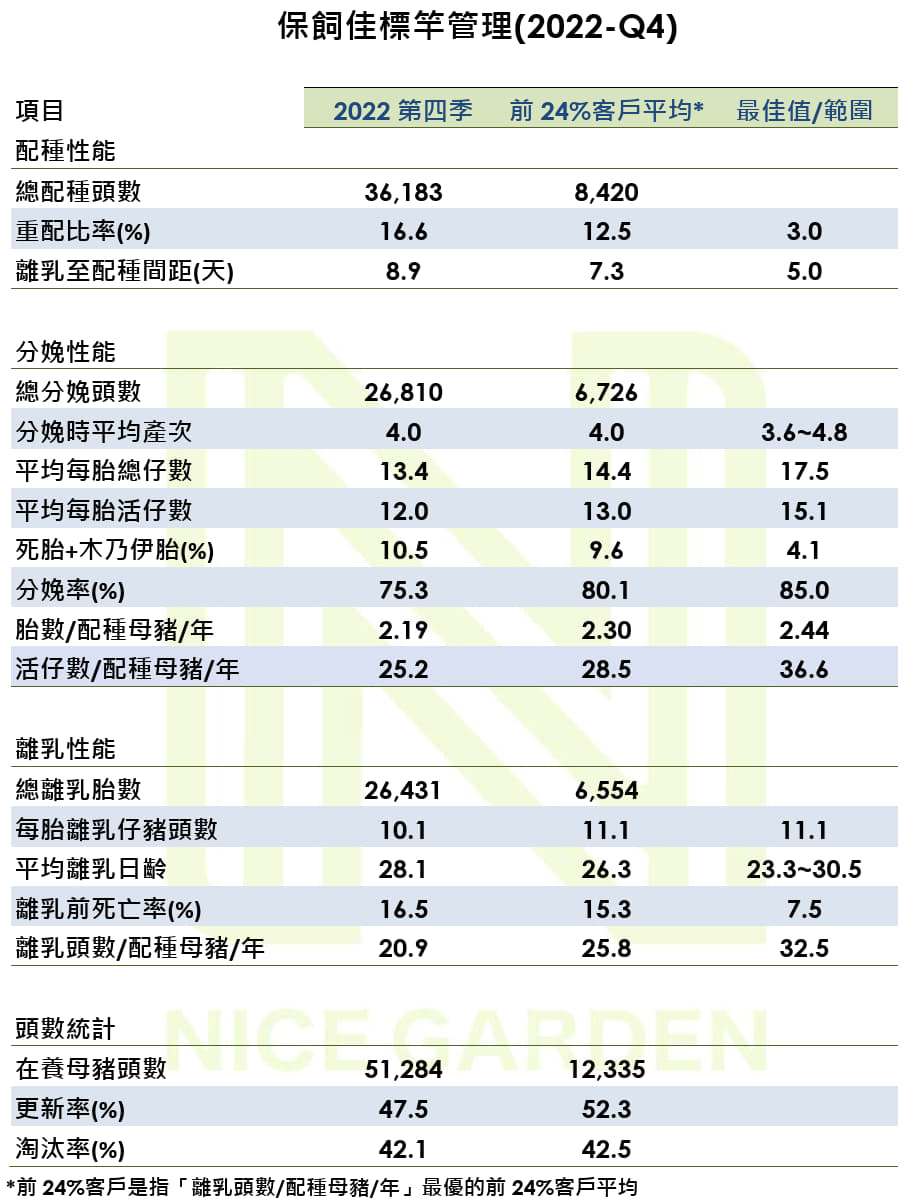 年保飼佳豬場管理軟體第四季季報,經篩選後採用有完整